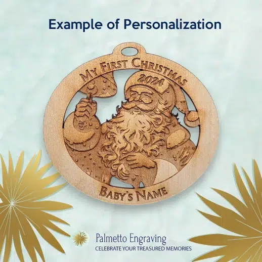 Mark this special milestone with our Baby’s First Christmas Ornament, a beautifully engraved keepsake that captures the magic of your little one’s first holiday season. Handcrafted in our South Carolina studio, this ornament is a timeless piece that will be treasured for years to come.