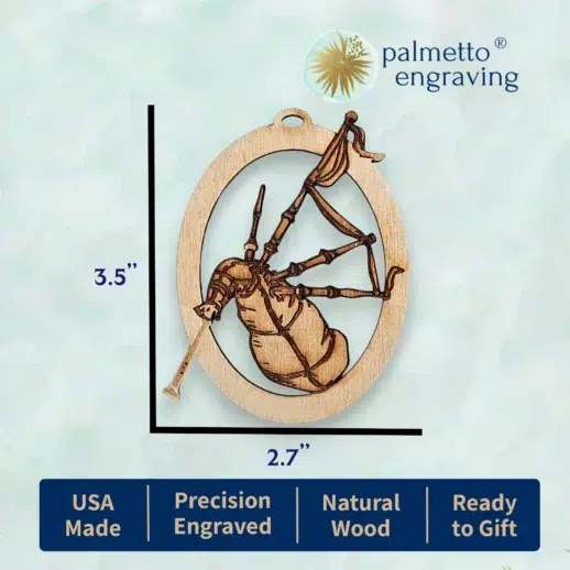 Celebrate the rich heritage of Scotland with our personalized Bagpipes Ornament. Handcrafted from natural wood, this ornament features a detailed design of traditional bagpipes, making it an ideal addition to your Christmas tree or a thoughtful gift for those who appreciate Scottish culture.