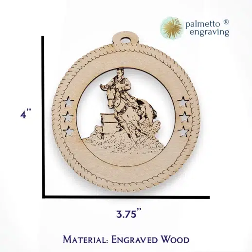 Crafted with precision in our South Carolina studio, this ornament showcases the artistry of American craftsmanship. The engraved details bring the movement of the horse and rider to life, making it a standout addition to equestrian Christmas decorations. With the option to personalize, it transforms into a truly unique gift for any rodeo athlete.
