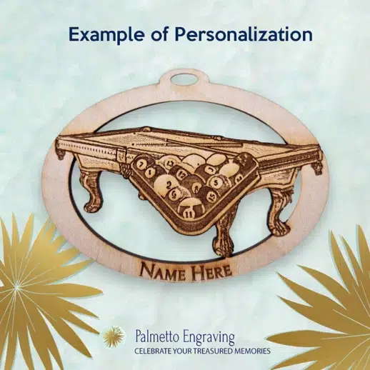 Expertly engraved in our South Carolina studio, this ornament features a detailed billiard design, making it a standout addition to any Christmas tree, game room décor, or bar setup. Whether given as a holiday keepsake or displayed year-round, it’s a meaningful tribute to the game of precision and skill.
