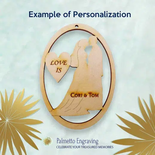 Celebrate a couple’s first holiday together with a custom engraved Christmas ornament, a keepsake to cherish forever.