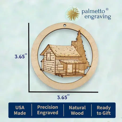 Celebrate the rustic charm of cabins with our personalized Cabin Christmas Ornament. Crafted from natural wood and measuring 3.65 inches in diameter, this ornament features a detailed cabin design. Perfect for cabin lovers and camping enthusiasts, it’s a unique keepsake for your holiday decor.
