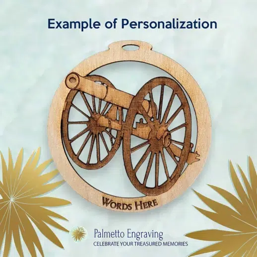 This engraved wooden Cannon Ornament is a beautiful way to honor history and add a unique touch to any Christmas tree.
