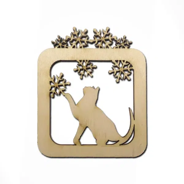 This finely engraved cat ornament features an adorable cat playing with snowflakes, making it a perfect Christmas gift for cat owners and feline fans.