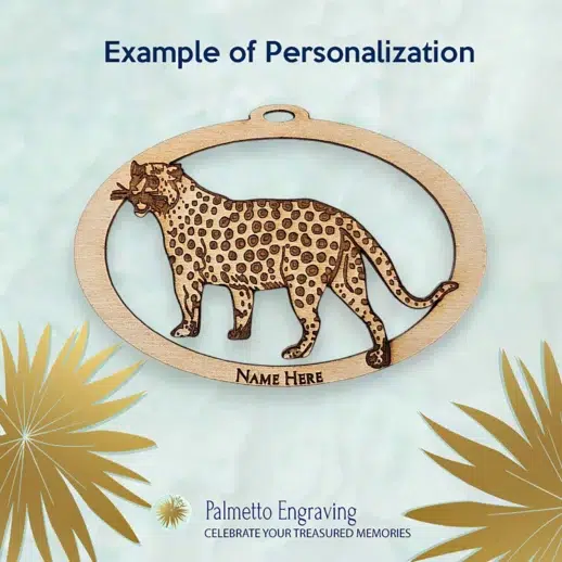 Each cheetah ornament is crafted with precision in our South Carolina studio, ensuring a beautifully detailed engraving. Personalize it with a name or date to make it a one-of-a-kind memento. Whether you’re shopping for a gift for an animal lover, a special safari decoration, or a cheetah-themed keepsake, this ornament adds a touch of the wild to any setting.