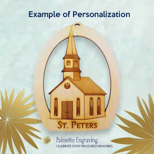 Expertly engraved in our South Carolina studio, this ornament features a classic church design that evokes the joy and serenity of the Christmas season. Whether displayed on a Christmas tree or kept as a year-round decoration, it serves as a reminder of the blessings of faith and the importance of community.