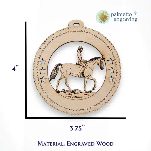 Crafted in the USA, each ornament is a testament to American craftsmanship and the enduring appeal of equestrian sports. The detailed portrayal of an English rider, set against the natural beauty of the wood, makes this ornament a unique and meaningful gift for equestrians, English riders, or anyone fascinated by the elegance of horseback riding.
