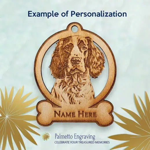 Celebrate the lively and affectionate nature of English Springer Spaniels with our Personalized English Springer Spaniel Ornament. Handcrafted from natural wood, this ornament beautifully captures the detailed, engraved design of an English Springer Spaniel, showcasing its energetic and loving personality. It’s a wonderful addition to your Christmas tree or a thoughtful gift for Springer Spaniel lovers. With personalization available, this ornament becomes a truly unique keepsake.