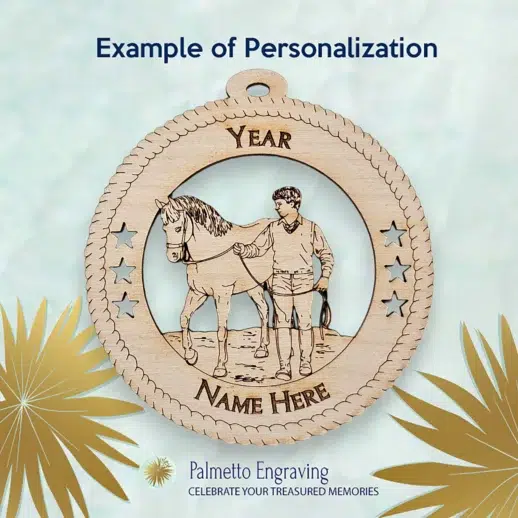 Celebrate the holiday season with an ornament that speaks to the heart of equestrian life. Our Boy Walking a Horse Ornament is more than just a decoration; it’s a tribute to the magical bond between horses and their riders, making it a meaningful addition to any collection of personalized horse Christmas ornaments.