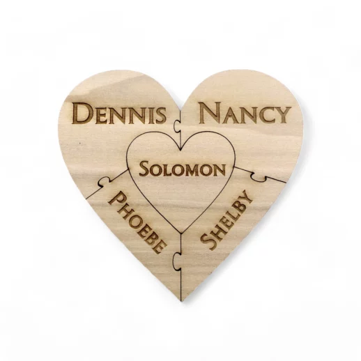 Celebrate unity with a custom heart puzzle, engraved with names or dates. A unique keepsake for weddings, anniversaries, and new family beginnings.