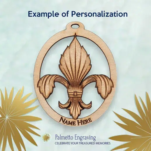Celebrate the elegance and heritage of New Orleans with our Personalized Fleur de Lis Ornament. Handcrafted from natural wood, this ornament beautifully captures the detailed, engraved design of the iconic fleur de lis, reflecting the rich history and charm of Louisiana. It’s a wonderful addition to your Christmas tree or a thoughtful gift for Mardi Gras celebrations and New Orleans-themed events. Personalization is available to make it a truly unique keepsake.