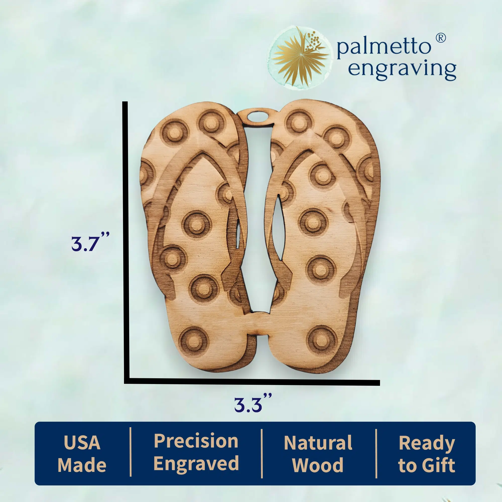 This flip flop ornament is the perfect addition to any Christmas tree. This laser cut wooden flip flop ornament is made from sustainable birch wood and is handcrafted in our South Carolina studio!