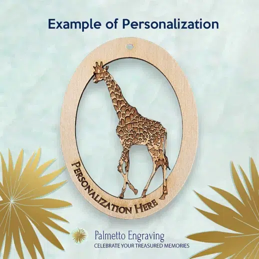 Celebrate the beauty of giraffes with this personalized giraffe ornament, a beautifully engraved keepsake for Christmas and beyond.