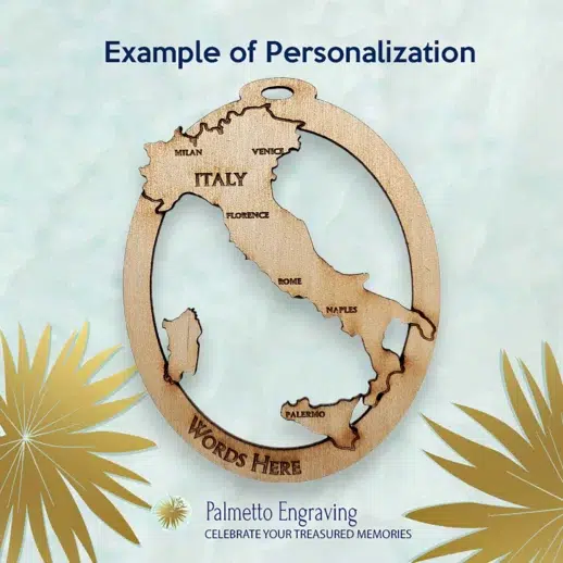 This finely engraved Italy ornament beautifully honors Italian culture. A timeless keepsake for travel lovers and festive holiday décor.