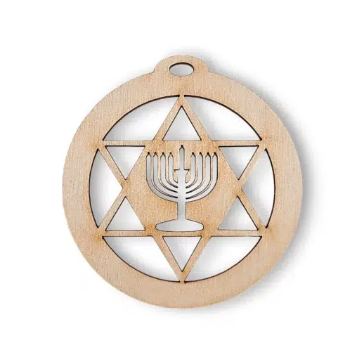 Handcrafted in our South Carolina studio, this ornament is laser-engraved on sustainable birch wood, ensuring durability and lasting beauty. Its elegant design makes it a perfect Hanukkah gift for friends, family, and those who cherish Jewish traditions.