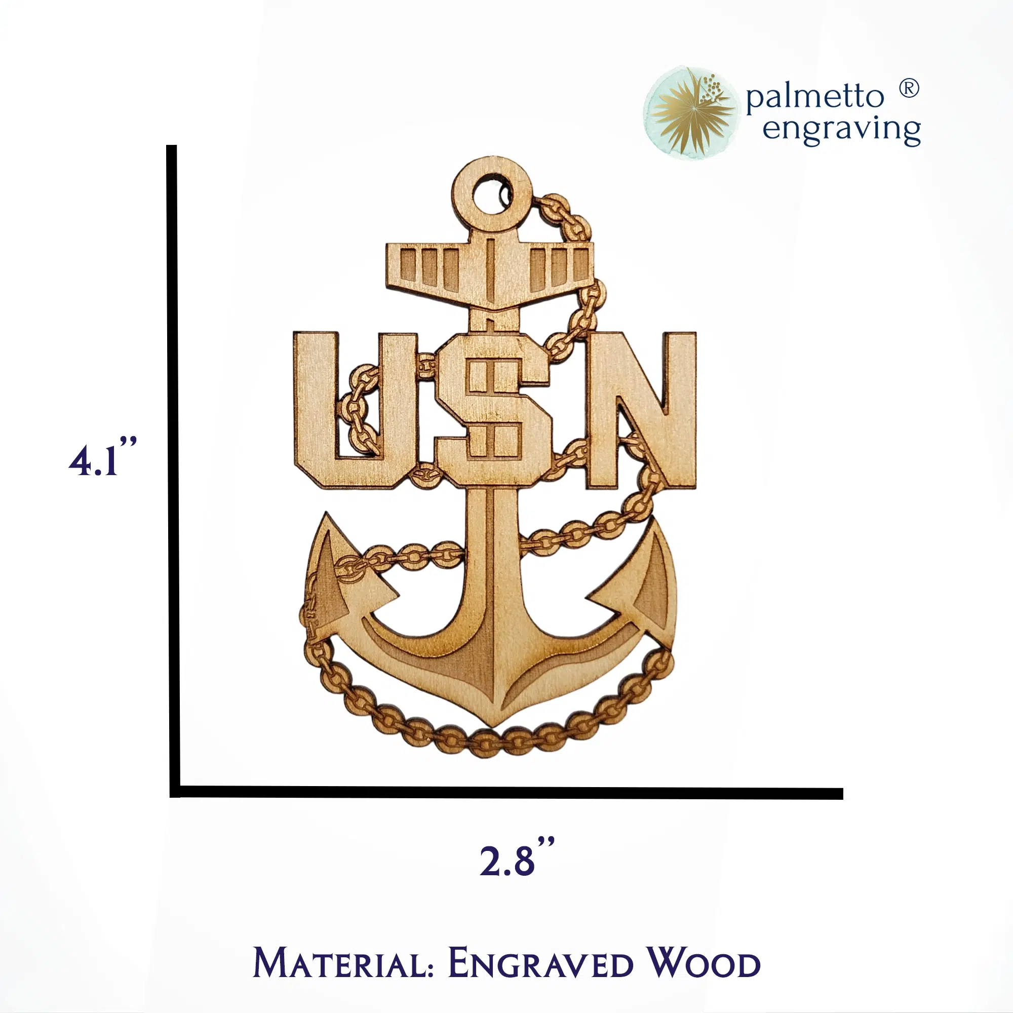 Crafted in our South Carolina studio, this Navy Chief Petty Officer Ornament is engraved with precision, making it a standout among military Christmas ornaments. Featuring the distinguished CPO anchor, it reflects the dedication and resilience that define the role of a Chief Petty Officer.