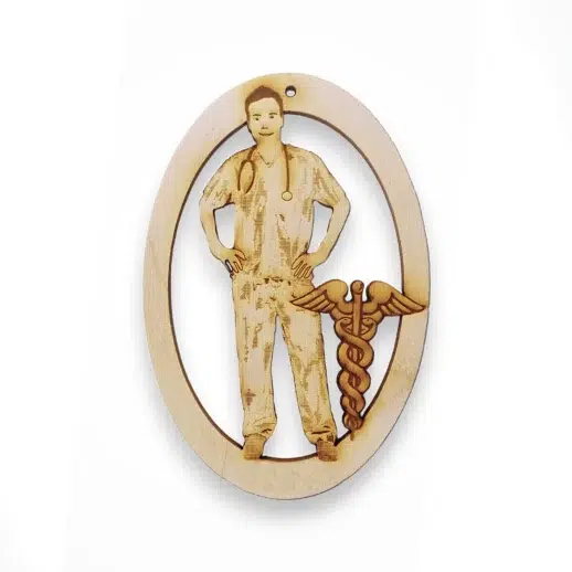 Handcrafted in our South Carolina studio, this ornament is made from natural wood and intricately engraved to capture the essence of the nursing profession. With the option to personalize, it becomes a cherished memento that male nurses will appreciate for years to come.