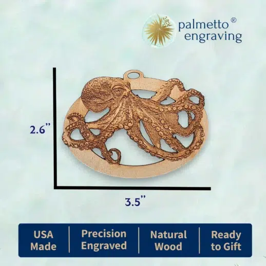 Celebrate the mesmerizing beauty of the ocean with our personalized Octopus Ornament. Handcrafted from natural wood, this ornament features a detailed design of an octopus, making it an ideal addition to your Christmas tree or a thoughtful gift for beach lovers, coastal decor fans, and anyone fascinated by sea creatures.