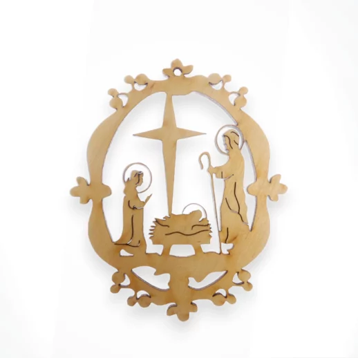 Crafted with care in our South Carolina studio, this wooden Nativity ornament is made from high-quality birch wood, ensuring durability and a timeless rustic charm. Its fine engraving highlights the beauty of the Nativity scene, making it an ideal addition to any Christian home.