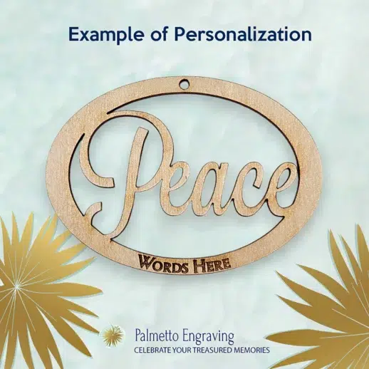 Share the gift of tranquility with this personalized Peace Ornament, perfect for any occasion.