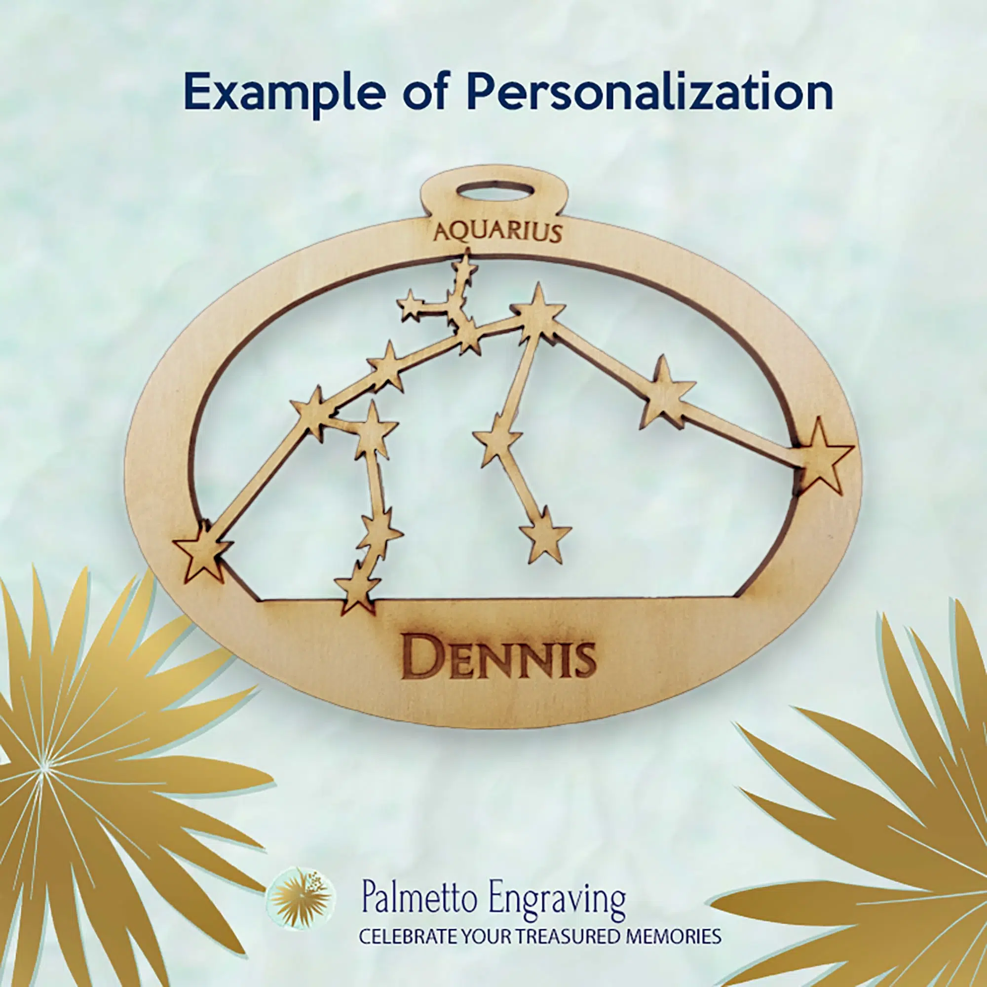 Expertly engraved in our South Carolina studio, this finely detailed ornament captures the essence of Aquarius, symbolizing intellect, originality, and humanitarianism. Whether displayed on a Christmas tree or kept as a year-round decoration, it serves as a stylish and meaningful tribute to this air sign.