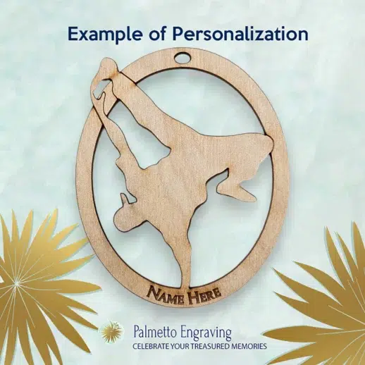 Handcrafted in our South Carolina studio, this hip-hop dancer ornament is made from natural birch wood and engraved with precision. With personalization options, you can add a name or date to create a one-of-a-kind gift that will be treasured for years.