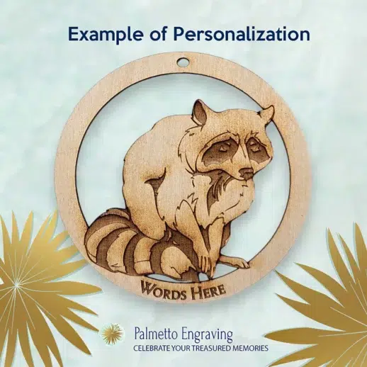Each ornament is carefully handcrafted in our South Carolina studio using natural birch wood. Personalization is available, allowing you to add a name or date to make it even more special. Whether it’s a holiday gift, a cabin decor accent, or a unique wildlife lover’s keepsake, this raccoon ornament will be cherished for years to come.
