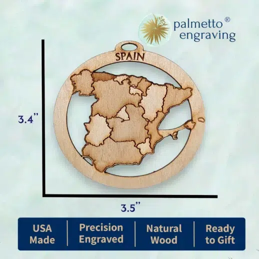 Celebrate the beauty and charm of Spain with our personalized Spain Ornament. Handcrafted from natural wood, this ornament features a detailed design that captures the essence of Spain, making it an ideal addition to your Christmas tree or a thoughtful gift for those who adore Spanish culture and travel.