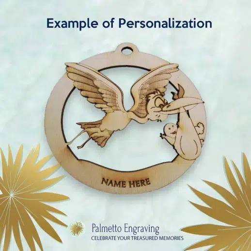 This beautifully engraved Stork and Baby Ornament is a heartwarming way to celebrate a new family member during the holiday season.