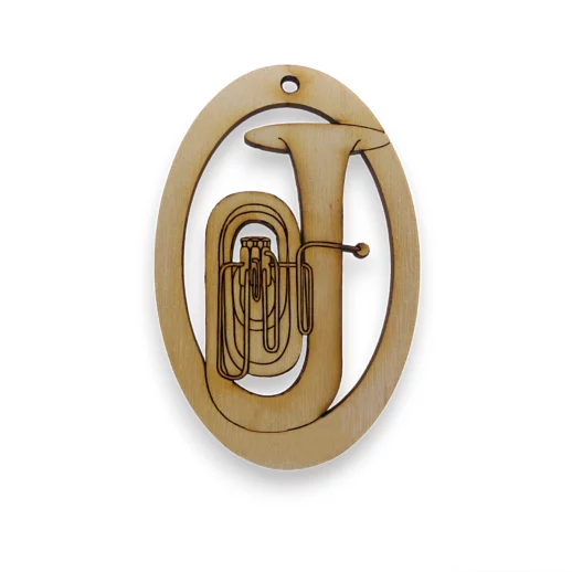 Handcrafted from natural birch wood in our South Carolina studio, this ornament features an intricately engraved tuba design, capturing the elegance and power of this iconic brass instrument. Personalize it with a name or date to make it a unique keepsake for yourself or a fellow musician. Whether displayed on a Christmas tree, given as a thoughtful gift, or added to a musician’s collection, this ornament is a timeless treasure for brass players.