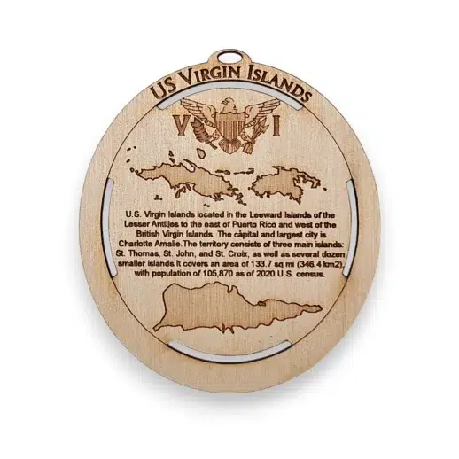 Celebrate the charm and beauty of the US Virgin Islands with our personalized US Virgin Islands Ornament. Handcrafted from natural wood, this ornament features a detailed map design of the islands, making it an ideal addition to your Christmas tree or a thoughtful gift for those who love island life and travel.