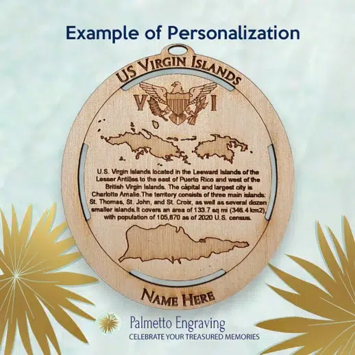 This US Virgin Islands Ornament is a celebration of the love for island life and the festive spirit of the holiday season. Personalize it to make it a unique and thoughtful gift or a special addition to your holiday decor.