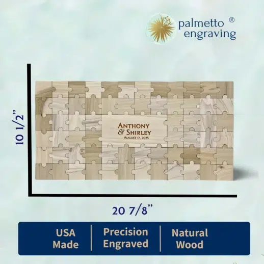 Searching for graduation guest book ideas that are creative and unique? Our Graduation Guest Book Puzzle is the perfect alternative to a traditional guestbook. This 65-piece wooden puzzle allows guests to leave handwritten messages, congratulations, or words of wisdom, creating a one-of-a-kind keepsake for the graduate.