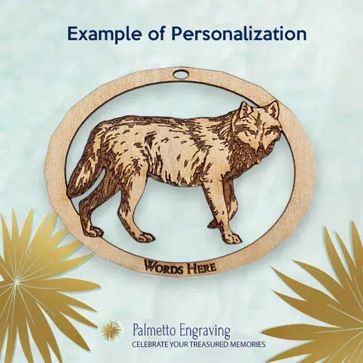 Celebrate the untamed beauty of the wilderness with this personalized wolf ornament. Featuring a finely detailed engraving of a majestic wolf, this handcrafted ornament is perfect for anyone who admires these noble creatures. Whether you’re searching for wolf-themed Christmas decorations, a gift for a wolf lover, or a rustic wildlife keepsake, this ornament will be treasured for years to come.